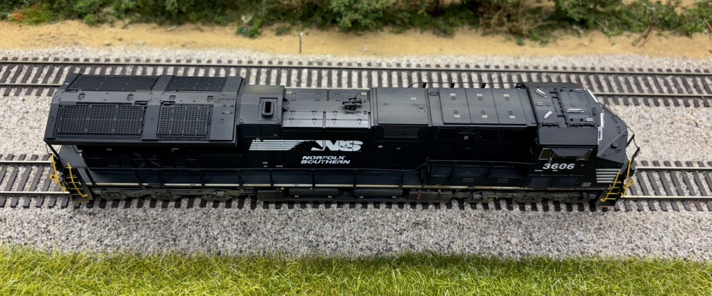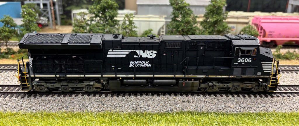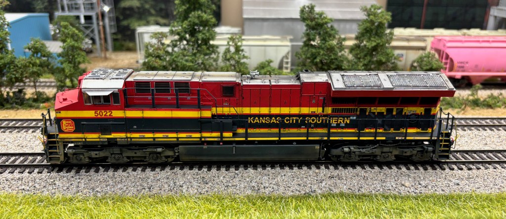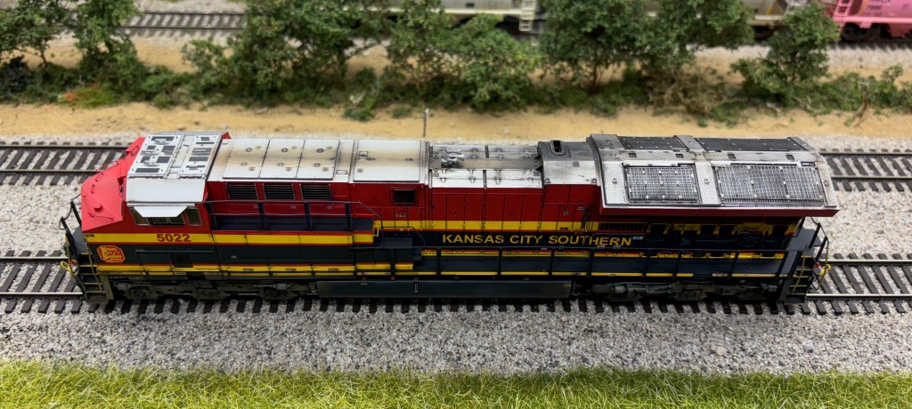 The last two engines I weathered were both Scaletrains ET44AC’s. The Kansas City Southern was upgraded with Microscale decals to replicate the normal candy cane stripes KCS was known for. Those can be a little challenging, but some patience and a lot of Microsol usually does the trick.
